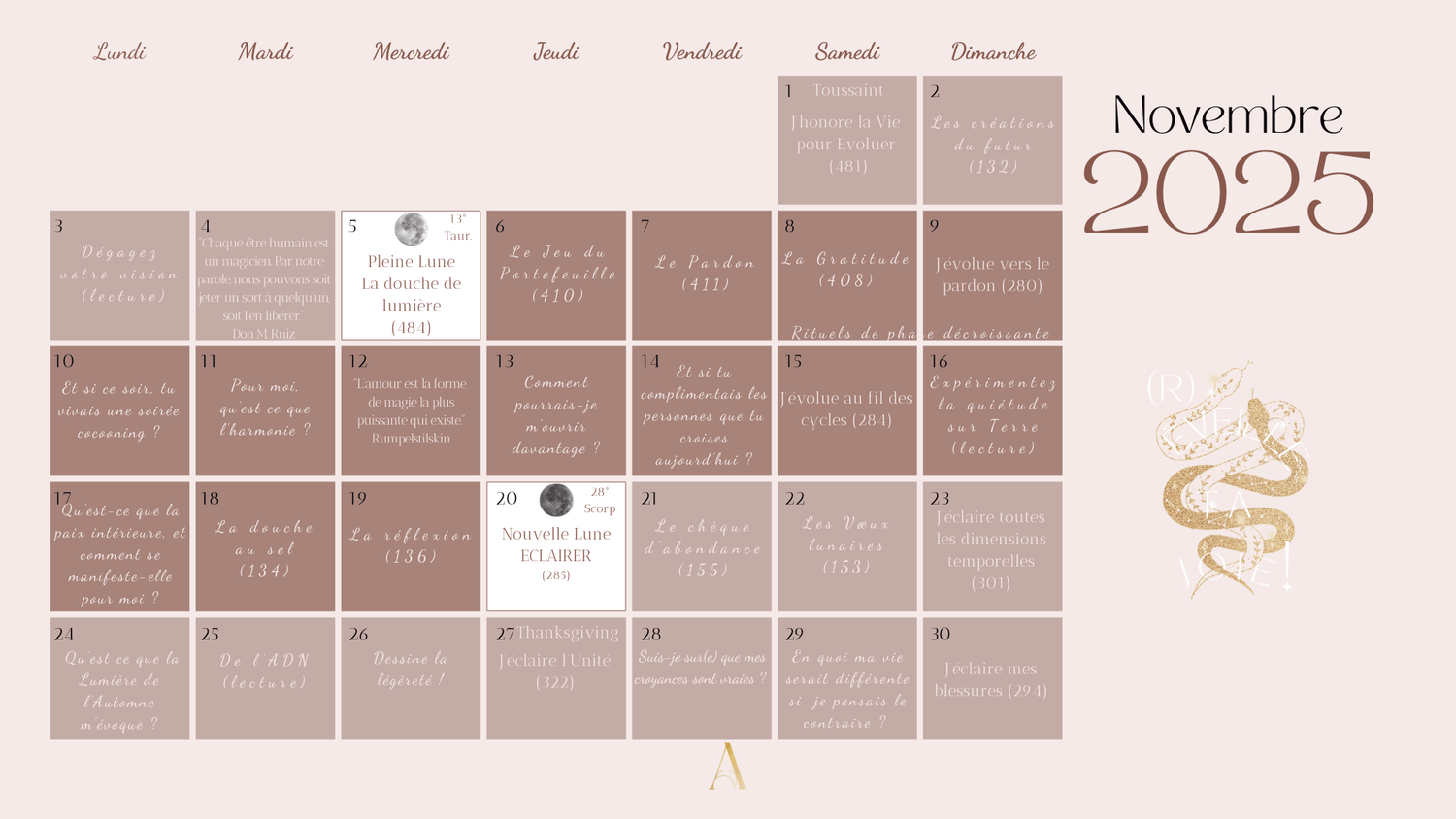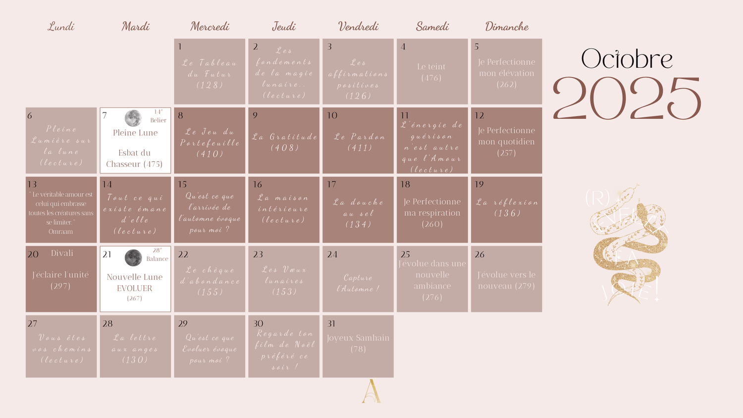 Ce calendrier est pensé comme un guide vivant, pour te connecter aux cycles naturels et intégrer la magie de l’automne dans ta vie de tous les jours.